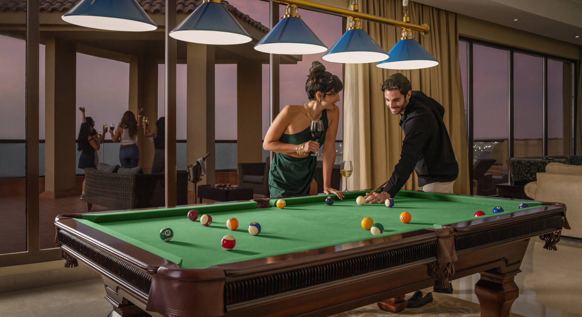 Situated on the top floor of the resort, this 5 star suite offers five bedrooms with bathrooms, separate living and dining areas, a private balcony, and entertainment area equipped with a pool table.